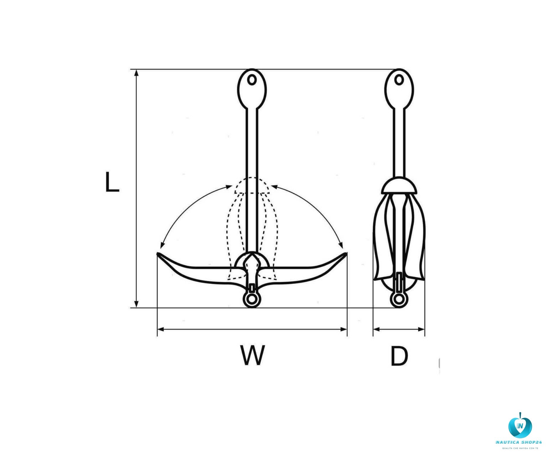 ⚓ Design: tipo “ombrello” con bracci pieghevoli, che si aprono quando l’ancora cala sul fondo e si chiudono per facilitare lo stivaggio a bordo.