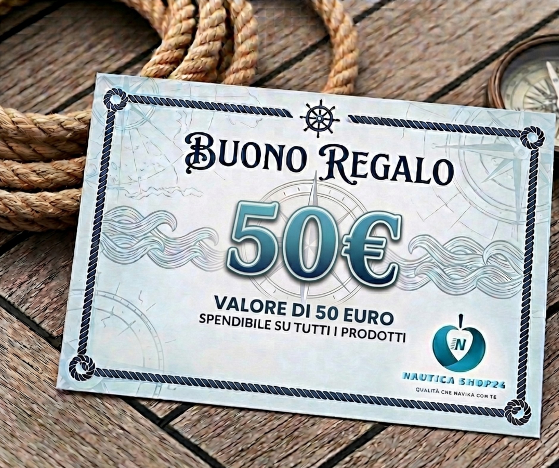 🚤🎁💳Approfitta di questo esclusivo buono sconto da 50€ dedicato agli accessori nautici! È l’occasione perfetta per rinnovare la tua attrezzatura di bordo o acquistare tutto ciò che ti serve per vivere al meglio le tue uscite in mare. Il voucher è valido su un’ampia selezione di prodotti, tra cui strumenti di navigazione, dotazioni di sicurezza, accessori per la manutenzione e comfort a bordo. Facile da utilizzare e immediato, ti permette di risparmiare senza rinunciare alla qualità. Preparati a salpare con il meglio… a un prezzo ancora più conveniente!