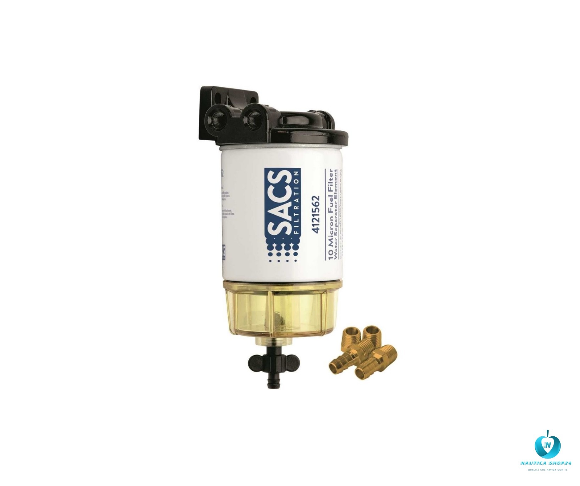 🚤⛽ Filtro Benzina 10 Micron SACS è un filtro carburante nautico ad alta efficienza progettato per trattenere impurità e particelle molto fini presenti nella benzina prima che raggiungano il motore. Grazie al grado di filtrazione 10 micron, garantisce una pulizia del carburante molto precisa, proteggendo componenti sensibili come pompa carburante, carburatori e iniettori.