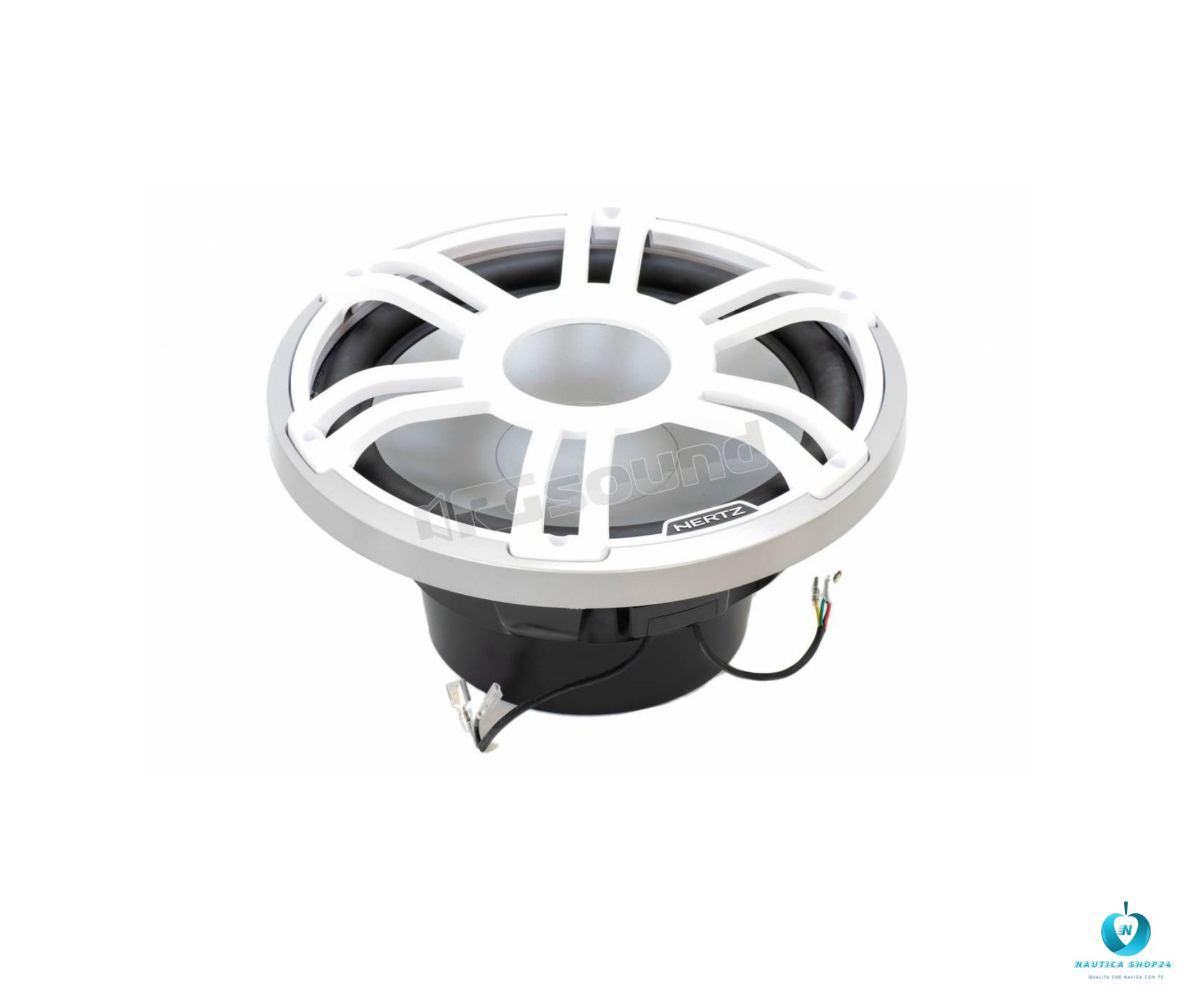 🔊🎶🌊 Hertz HMS 12 S2‑LD‑SW è Subwoofer nautico marino da 12″ (≈ 30 cm) con illuminazione LED RGB, impedenza 2 Ω e griglia sportiva color argento‑bianco — un componente potente e scenografico per il sistema audio della tua barca, yacht o imbarcazione da diporto.