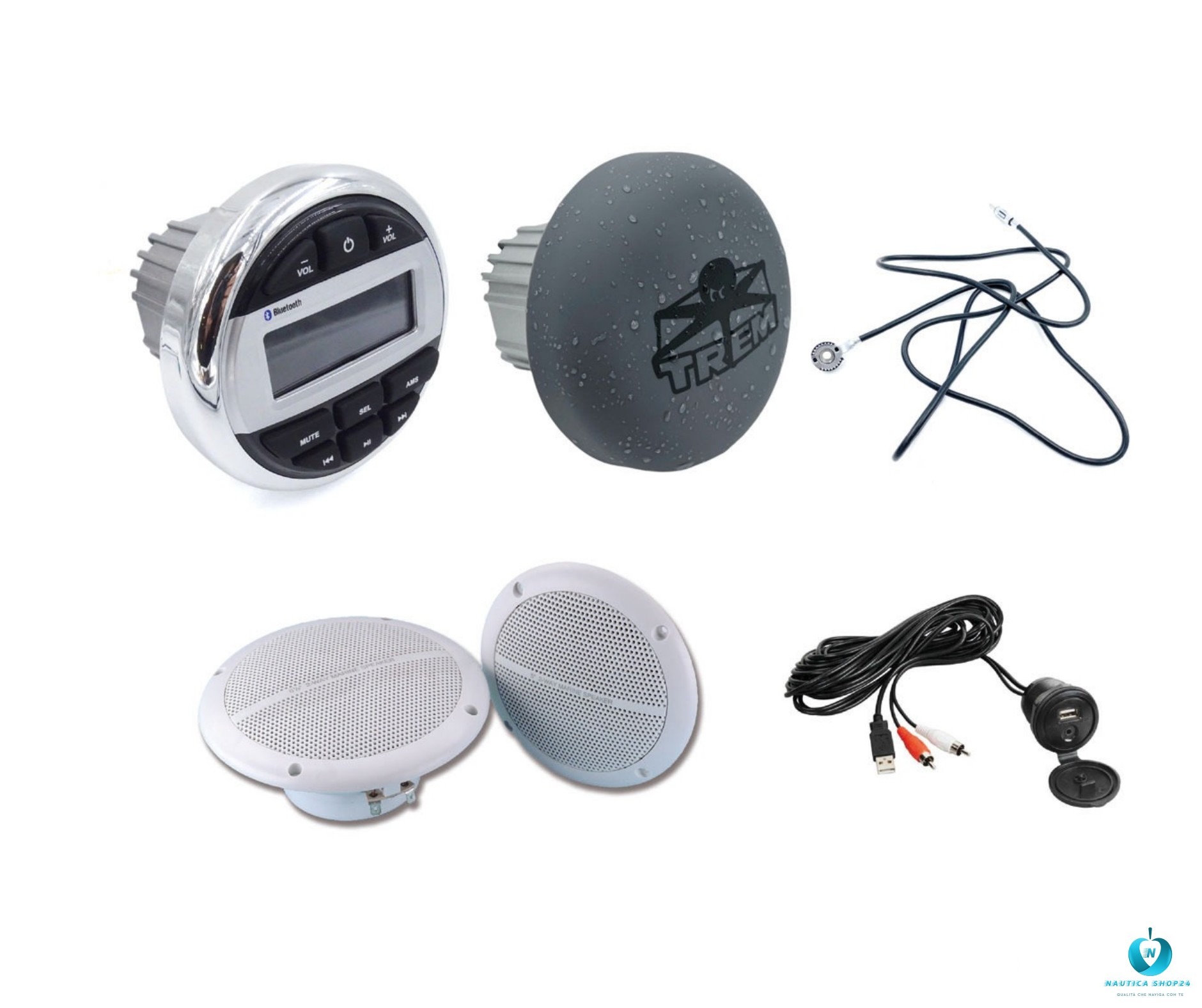 🔊🎶🌊 Kit Radio T-Sound è un sistema audio nautico progettato per l’installazione su barche, gommoni, yacht e altri ambienti esterni. Il kit include tutti i componenti necessari per realizzare un impianto stereo di bordo pratico e resistente alle condizioni marine. Grazie alla struttura impermeabile e alla protezione dai raggi UV, garantisce affidabilità e durata anche in presenza di umidità , salsedine e sole intenso. La radio è dotata di Bluetooth, porta USB, radio AM/FM e lettore MP3, permettendo di riprodurre musica da smartphone, chiavette USB o altre sorgenti esterne. Il kit comprende inoltre una coppia di casse nautiche doppio cono da 80 W, realizzate in ABS ad alta resistenza, impermeabili e progettate per resistere agli agenti atmosferici. Questi altoparlanti a 2 vie offrono una buona qualità audio e sono ideali per l’installazione sia all’interno che all’esterno dell’imbarcazione. Completano il kit un’antenna FM a filo, il cavo di ingresso USB/AUX per il collegamento di dispositivi esterni e un copristereo in PVC che protegge l’unità principale da acqua, polvere e raggi solari quando non è in uso.
