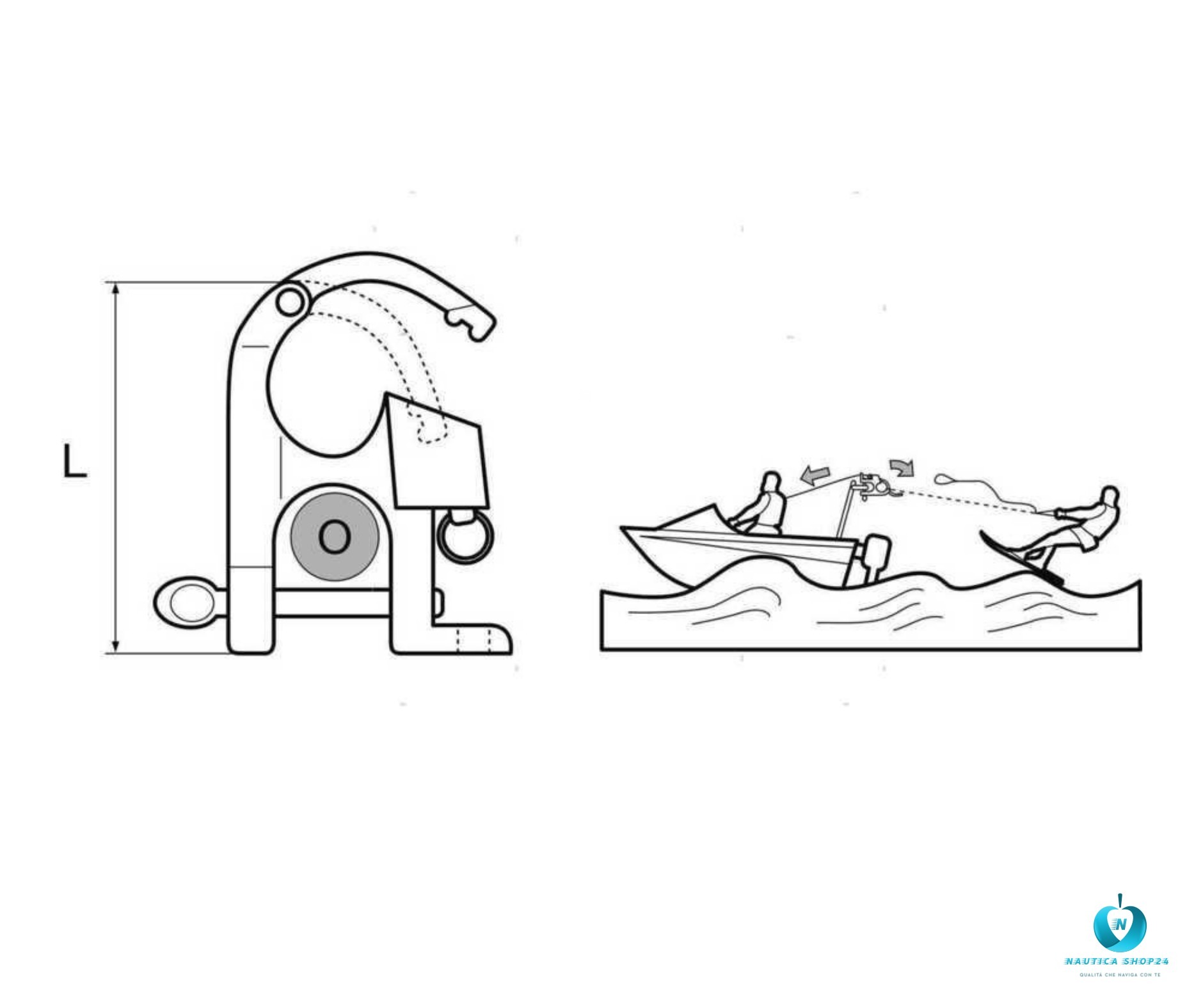 🪝 Carico di lavoro: varia in base alla dimensione e al modello, ma normalmente è dimensionato per sostenere carichi elevati e forze tipiche della nautica o del traino nautico.