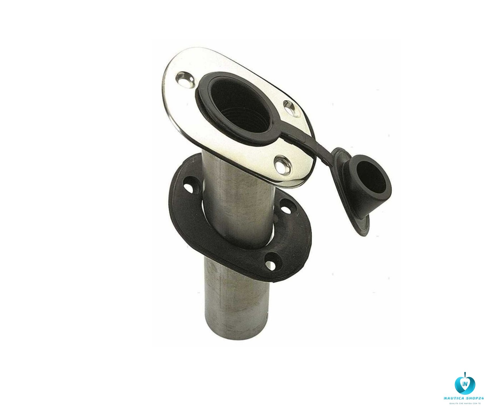 🛥️🎣 Portacanne a incasso angolato con diametro interno da 40 mm in acciaio inox è un accessorio pensato principalmente per barche e imbarcazioni, ideale per l’installazione permanente sul ponte o sulla murata della tua imbarcazione per fissare le canne da pesca in modo sicuro e stabile.