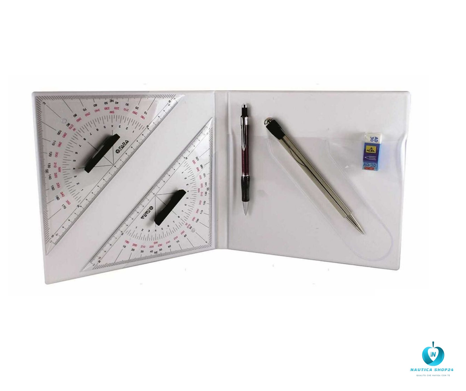 ⚓ Il Set Carteggio Compatto è un kit completo e maneggevole, pensato per chi si prepara agli esami per la patente nautica o per chi vuole avere strumenti pratici per il carteggio manuale durante la navigazione. Il design compatto permette di trasportarlo facilmente in borsa o astuccio senza rinunciare alla precisione negli strumenti.