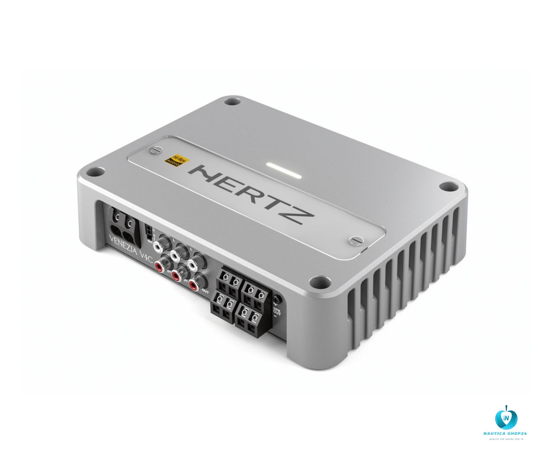 🔊🎶🌊 Hertz Venezia V4C è un amplificatore nautico a 4 canali compatto progettato per applicazioni audio su barche, yacht e imbarcazioni da diporto, dove spazio, potenza ed efficienza sono essenziali. Offre un ottimo equilibrio tra potenza erogata e dimensioni ridotte, insieme a una costruzione robusta certificata IPX2 per resistere alle condizioni marine più difficili come umidità , nebbia salina, vibrazioni e temperature estreme.
